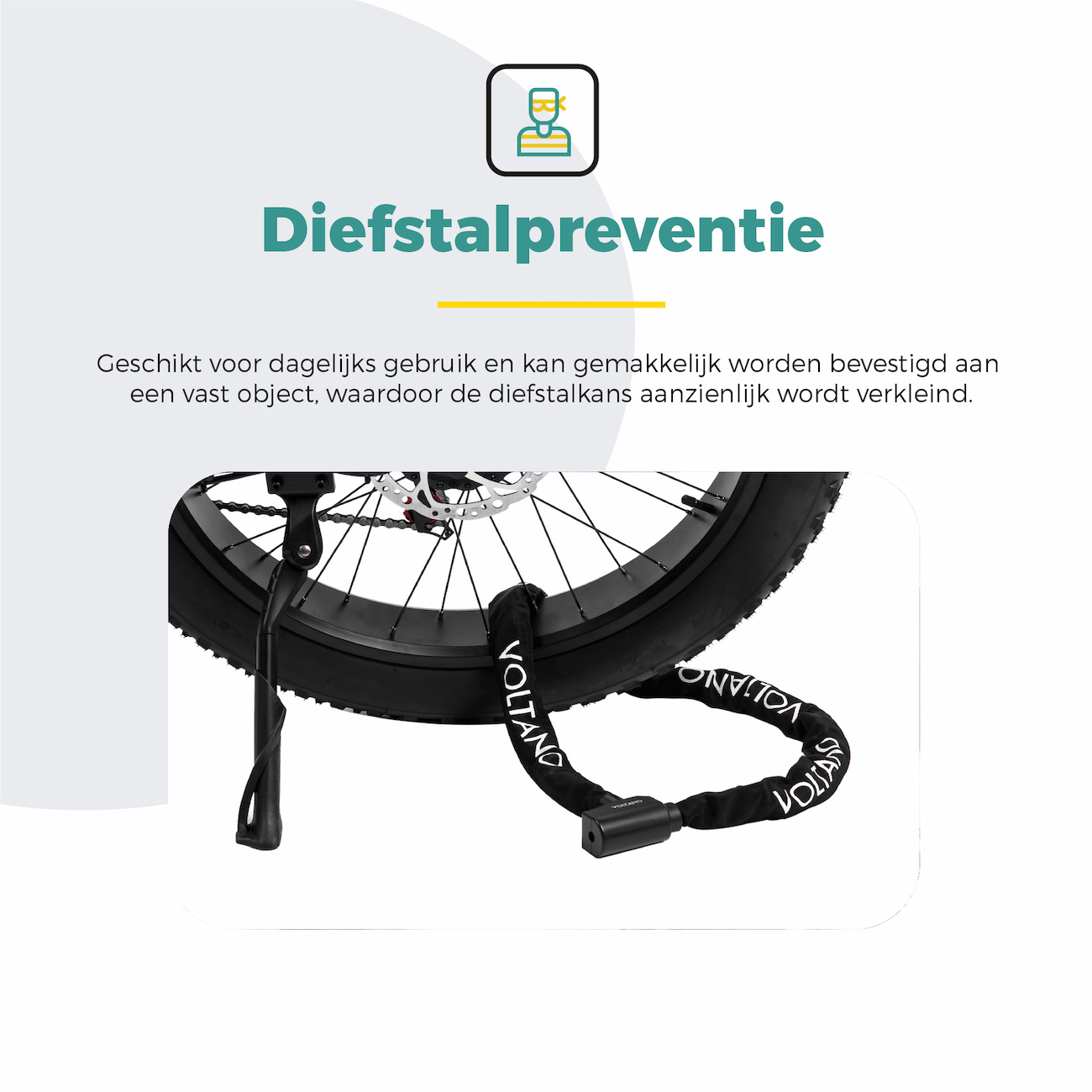Wil jij ook je fiets veilig op slot kunnen zetten als je je fiets neerzet? Dan is een goed slot een vereiste. Met Voltano ART1 Kettingslot – 110CM – ART1 kan je je fiets overal met een veilig gevoel neerzetten, of het nou een drukke stadstraat is of bij iemand aan huis.