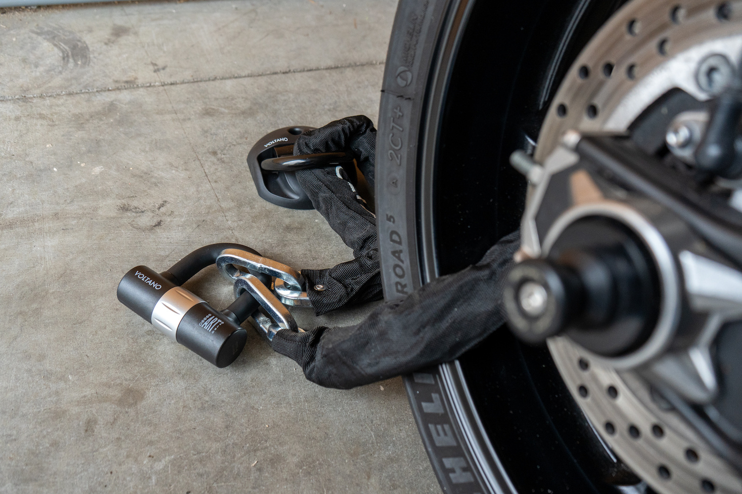 Voor maximale veiligheid wordt aangeraden om de Voltano ART4 ketting te combineren met een ART gecertificeerd vloeranker wanneer je jouw motor thuis beveiligd. Dit biedt een extra laag bescherming en verhoogt de weerstand tegen pogingen tot diefstal.