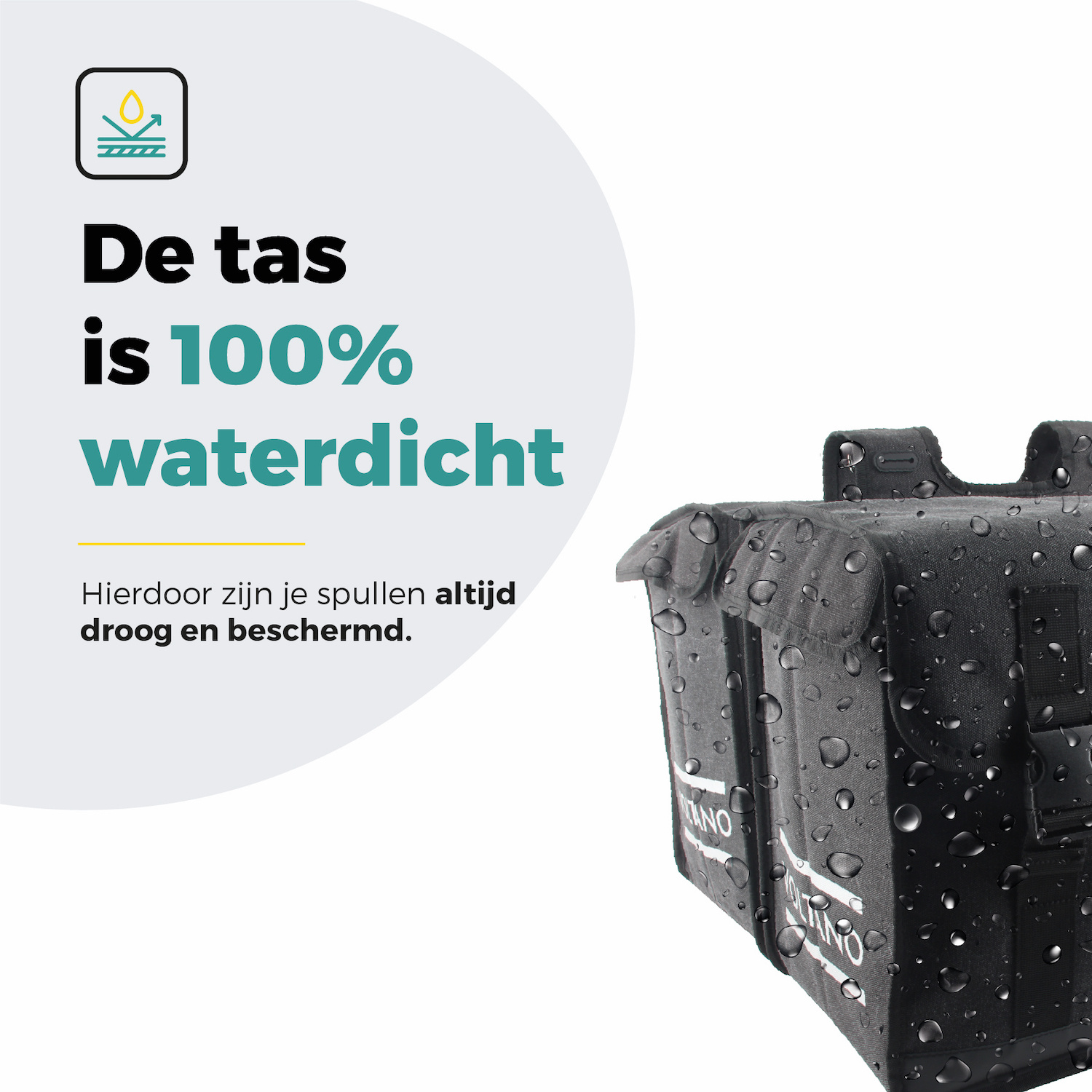 Dankzij de ruime opening van de Voltano Canvas Fietstas 70L – Zwart – 100% Waterdicht – Afstandhouder Optie kun je eenvoudig grotere spullen kwijt, zoals een laptop, helm of boodschappen. De reflecterende details op de zijkanten zorgen voor extra zichtbaarheid in het verkeer, wat de veiligheid bij avondritten vergroot. Regen of modder? Geen probleem. Het hoogwaardige canvas is niet alleen volledig waterdicht, maar ook slijtvast en duurzaam. Zo blijven je spullen droog en schoon, ongeacht de weersomstandigheden. De afstand houder beschermt daarnaast de tas tegen beschadiging door de wielen, waardoor de levensduur wordt verlengd.