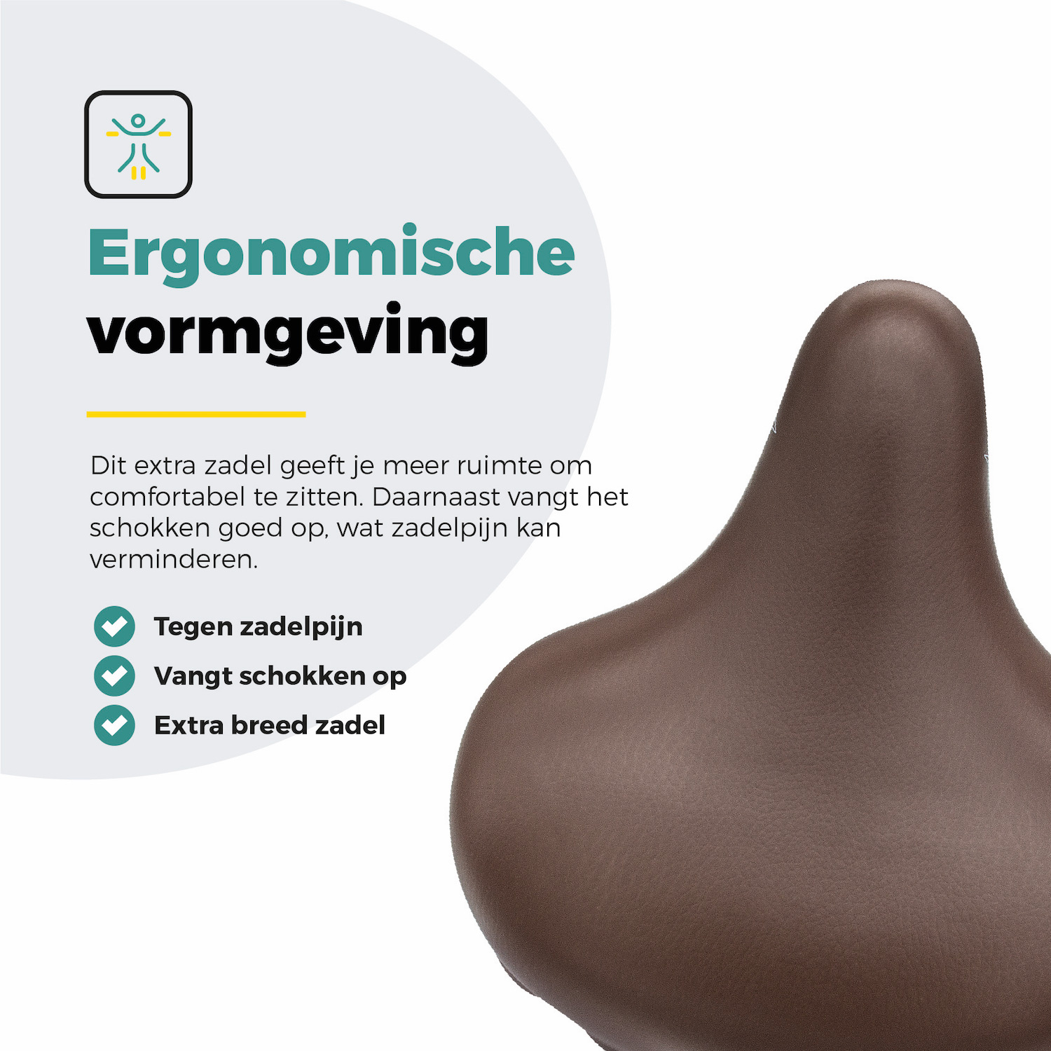- Extra breed en ergonomisch ontwerp: Zorgt voor extra comfort tijdens het fietsen.