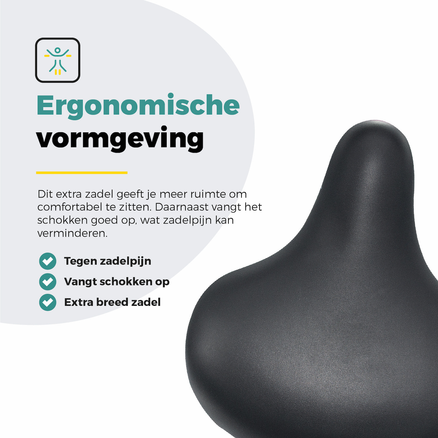 • Extra breed en ergonomisch ontwerp: Zorgt voor extra comfort tijdens het fietsen.