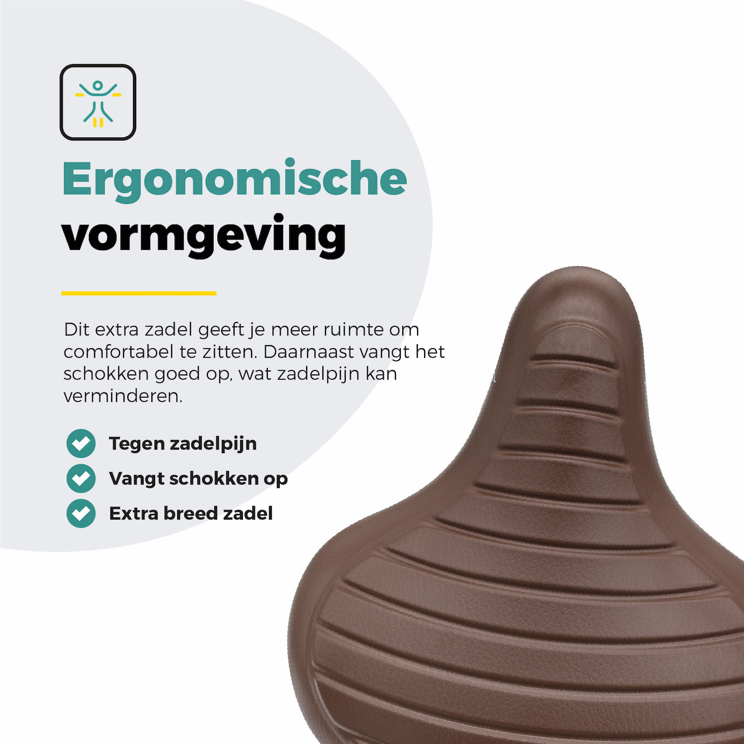 - Extra breed en ergonomisch ontwerp: Zorgt voor extra comfort tijdens het fietsen.
