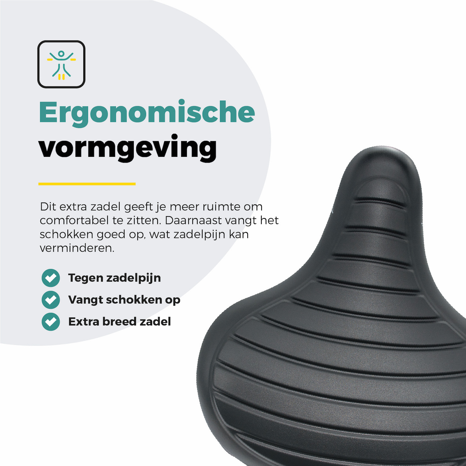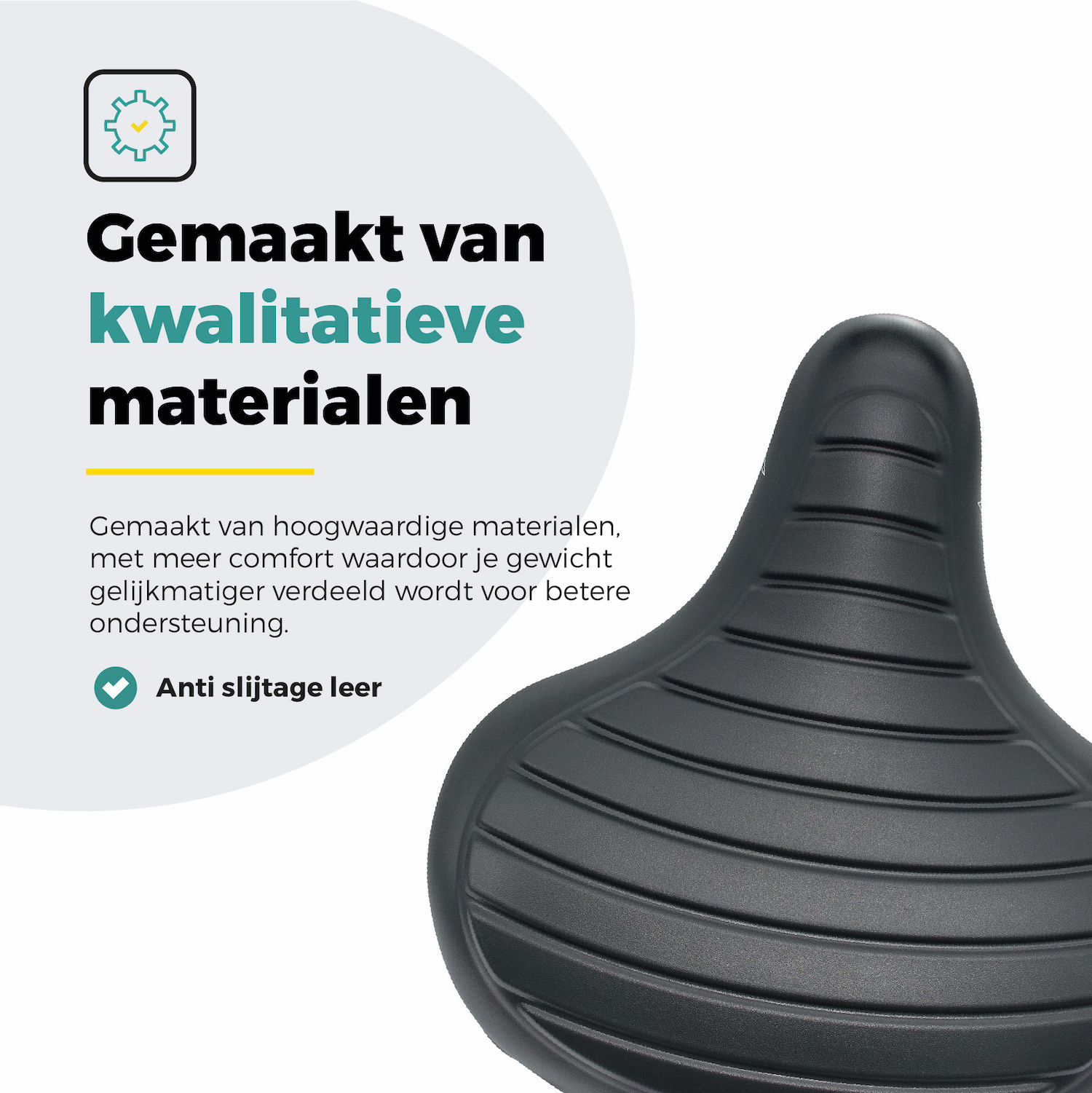 - Extra breed en ergonomisch ontwerp: Zorgt voor extra comfort tijdens het fietsen.