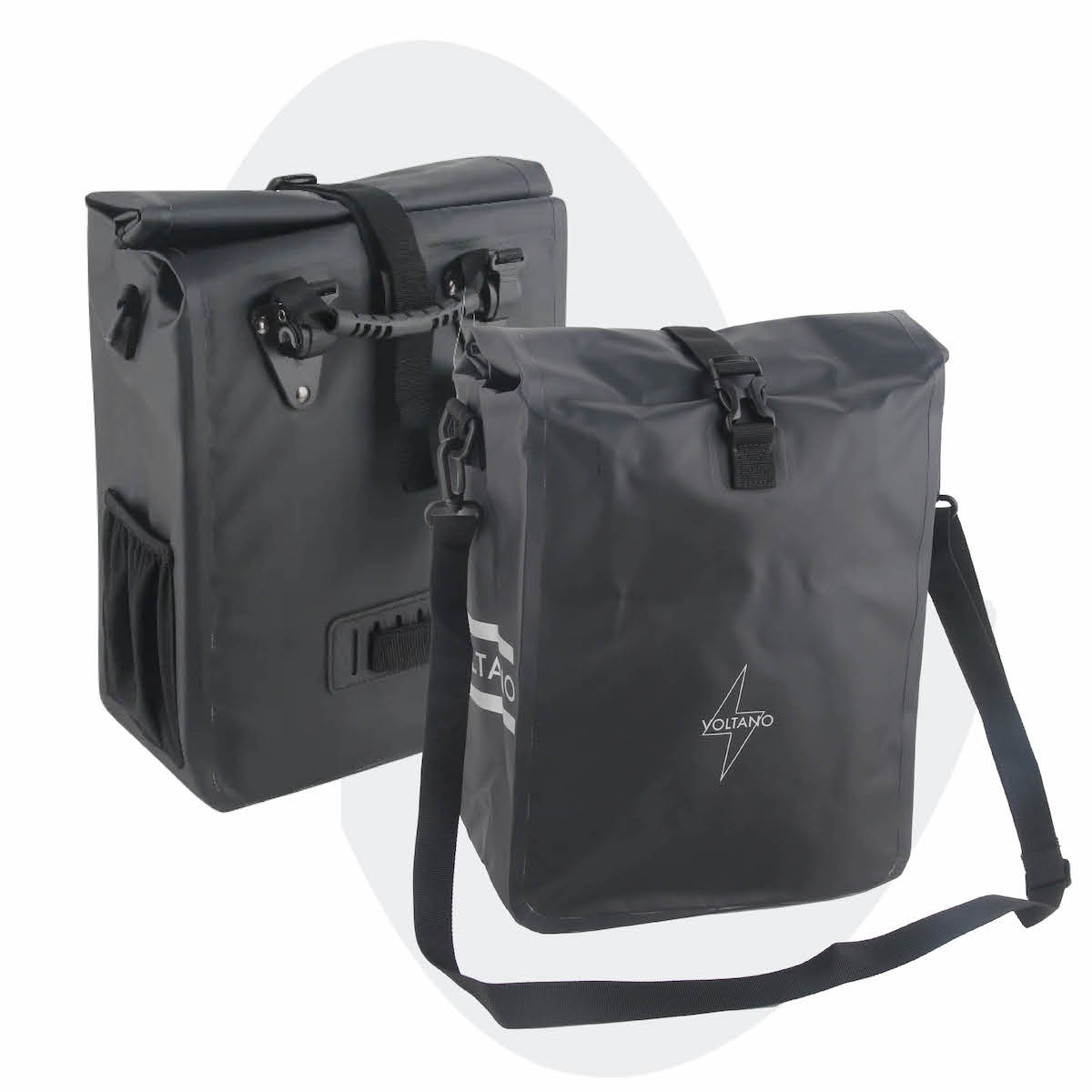 De Voltano pakaftas is dé perfecte enkele fietstas. De tas is gemaakt van 100% waterdicht en sterk tarpaulin. De tarpaulin is aan elkaar geseald waardoor de fietstas nagenoeg onverwoestbaar is. Deze fietstas gaat vele jaren mee. De tas wordt geleverd inclusief gratis schouderband. Hierdoor kan u de tas ook eenvoudig als schoudertas gebruiken. Dat is bijvoorbeeld handig bij het boodschappen doen. Ook beschikbaar met rugtas functie!