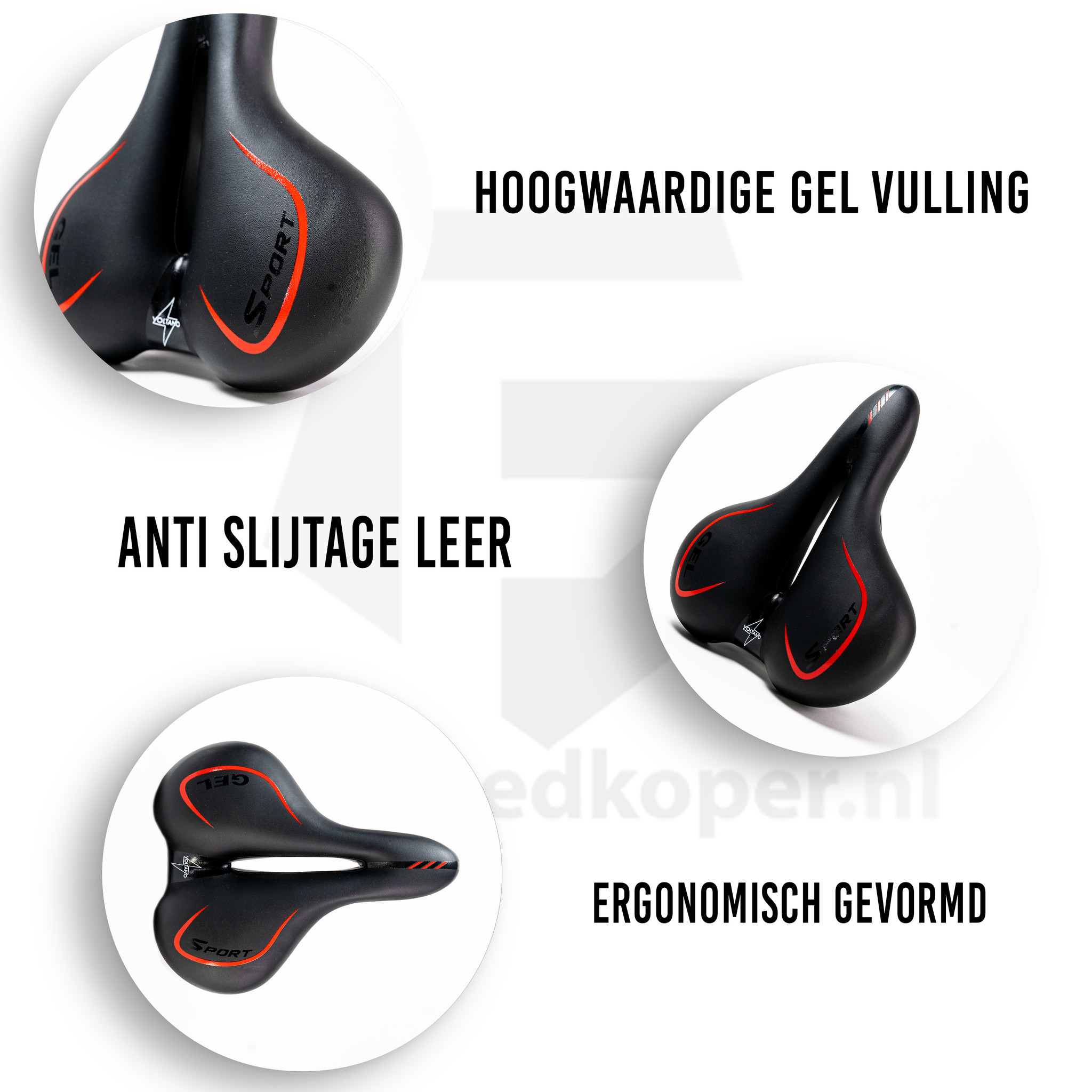 Voltano Fietszadel City / Tour – Zwart / Rood – Met Uitsparing – Gel – Unisex