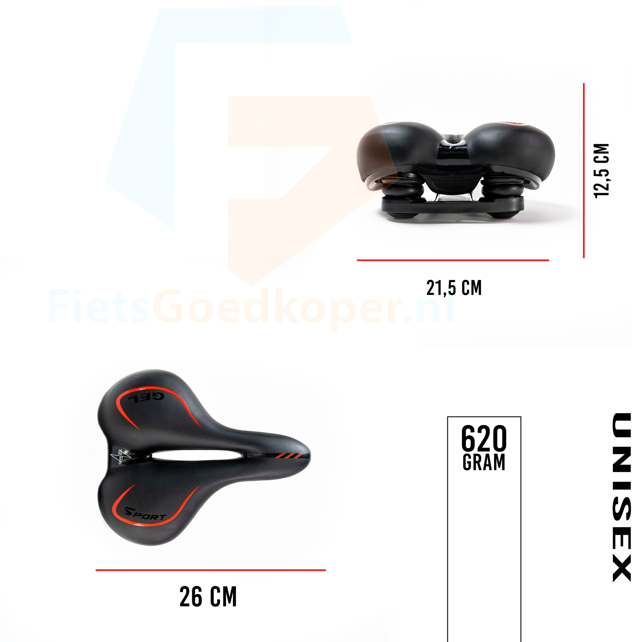 • Voorkomt zadelpijn effectief