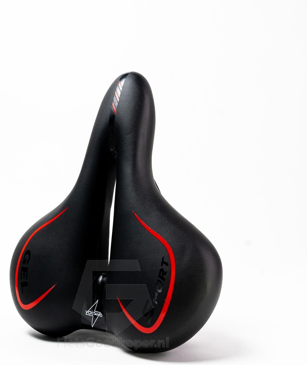 Over het Voltano Fietszadel City / Tour – Zwart / Rood – Met Uitsparing – Gel – Unisex