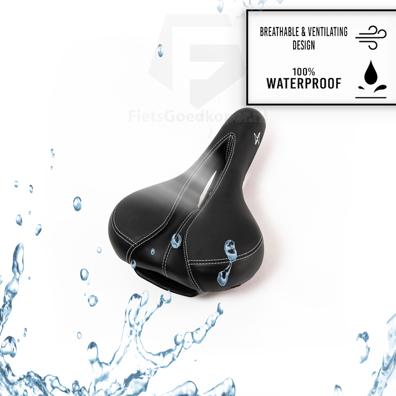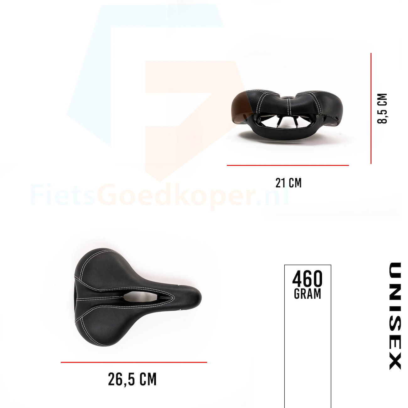 Comfortabel fietszadel geschikt voor zowel stads- als elektrische fietsen. Door de foam vulling zit dit zadel zeer comfortabel, daarnaast helpt ook de uitsparing tegen zadelpijn. Door het anti-slijtage kunstleer slijt dit zadel minder snel dan andere zadels. Dit zadel vangt goed schokken op en is ventilerend waardoor deze ook geschikt is voor langere afstanden.