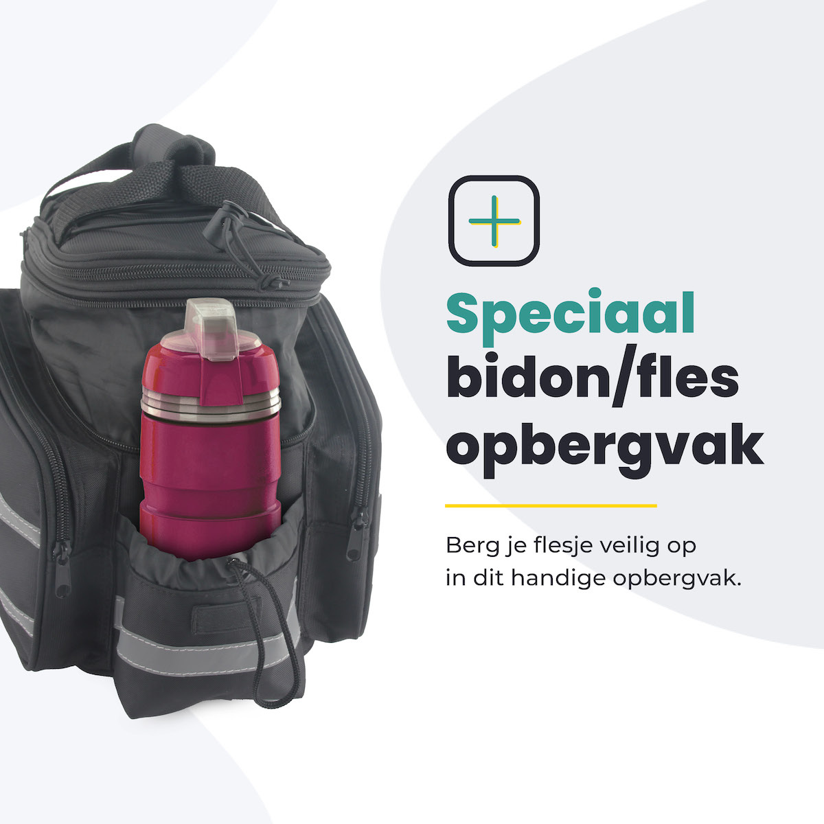 De Voltano Luxe Bagagedrager Tas – Enkele fietstas – 100% Waterdicht – 13 Liter is een praktische en stijlvolle oplossing voor wie op zoek is naar een betrouwbare tas om op de fiets te monteren. Met een inhoud van 13 liter en meerdere opbergvakken biedt deze tas genoeg ruimte voor al je spullen. Bovendien is de tas voorzien van handige extra’s, zoals reflecterende elementen en een vakje voor een bidon of flesje drinken. Of je nu boodschappen gaat doen of een lange fietstocht maakt, de Voltano bagagedrager tas biedt alles wat je nodig hebt.