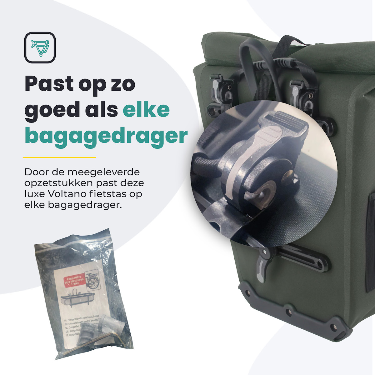 - Type: Voltano Luxe E-bike Fietstas 28L – Olijf Groen – Pakaftas Met Laptop vak – 100% Waterdicht