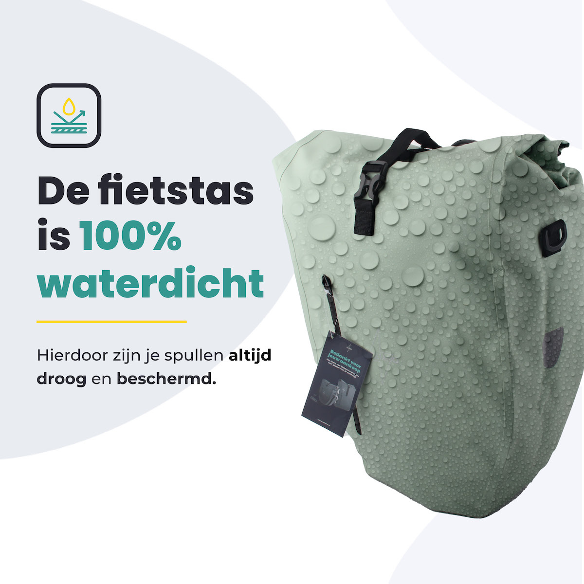 - Kleur: Voltano Luxe Fietstas 28L – Enkele Pakaftas – Mint Groen – 100% Waterdicht