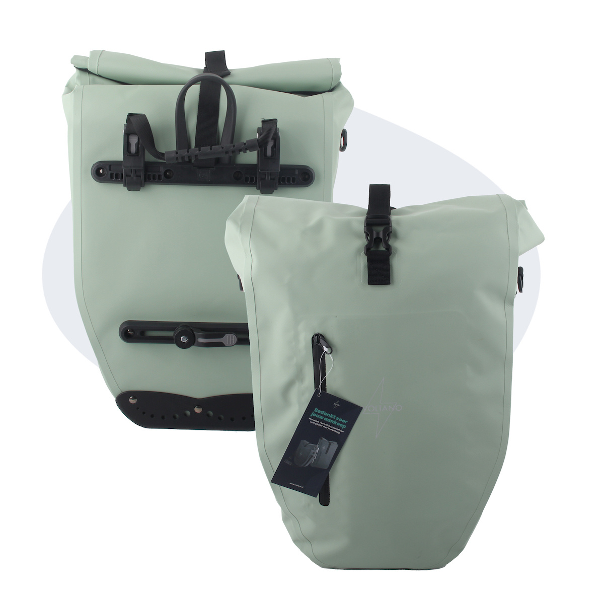 Over de Voltano Luxe Fietstas 28L – Enkele Pakaftas – Mint Groen – 100% Waterdicht