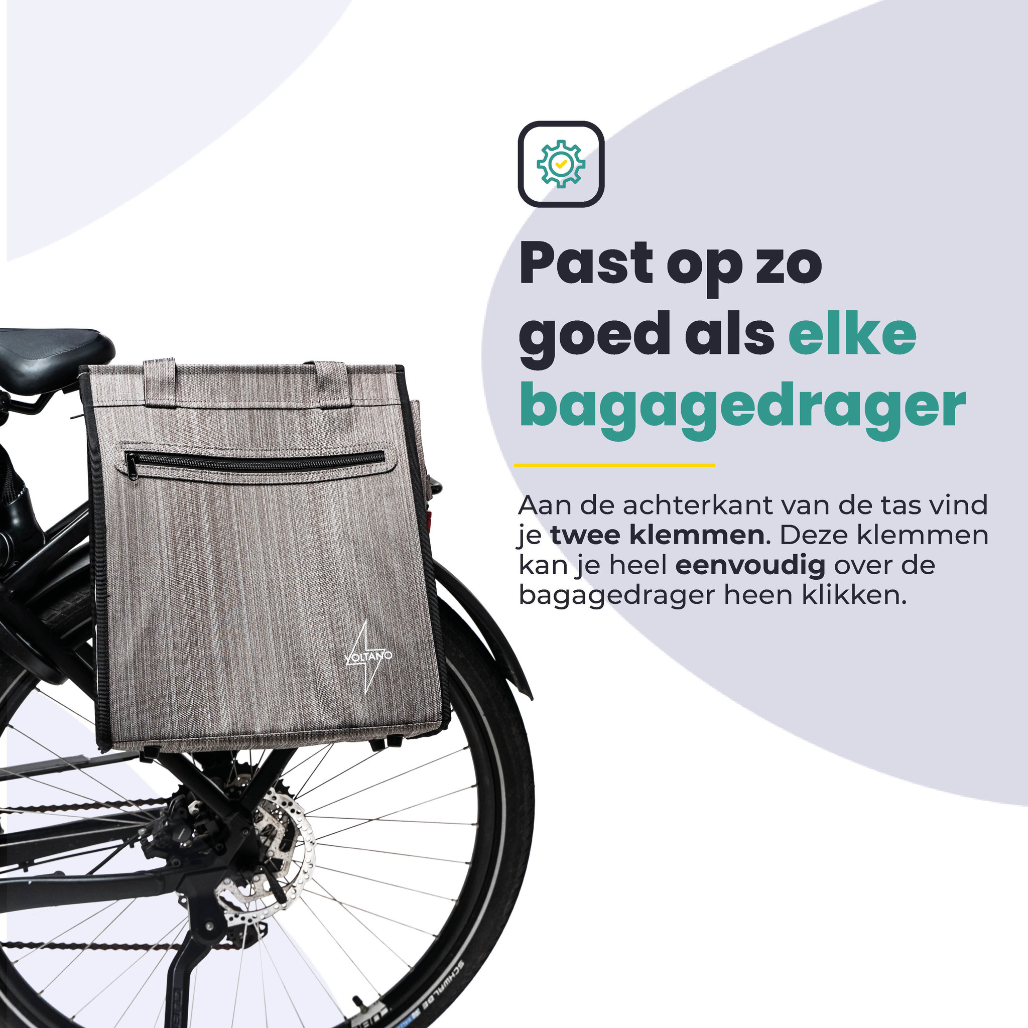 Voltano Shopper Fietstas – 20L – Enkele Pakaftas – Grijs – Verstevigd