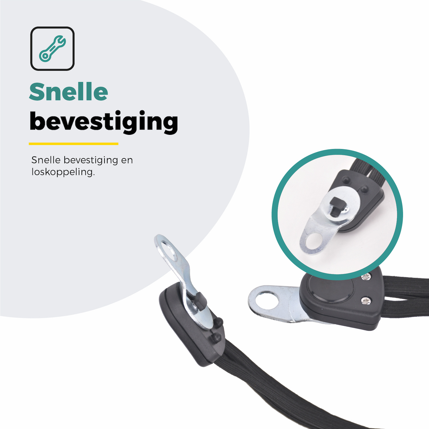De snelbinders zijn niet alleen makkelijk te bevestigen, maar ook snel los te koppelen. Dit maakt ze ideaal voor dagelijks gebruik waarbij je vaak bagage moet vastzetten en losmaken.